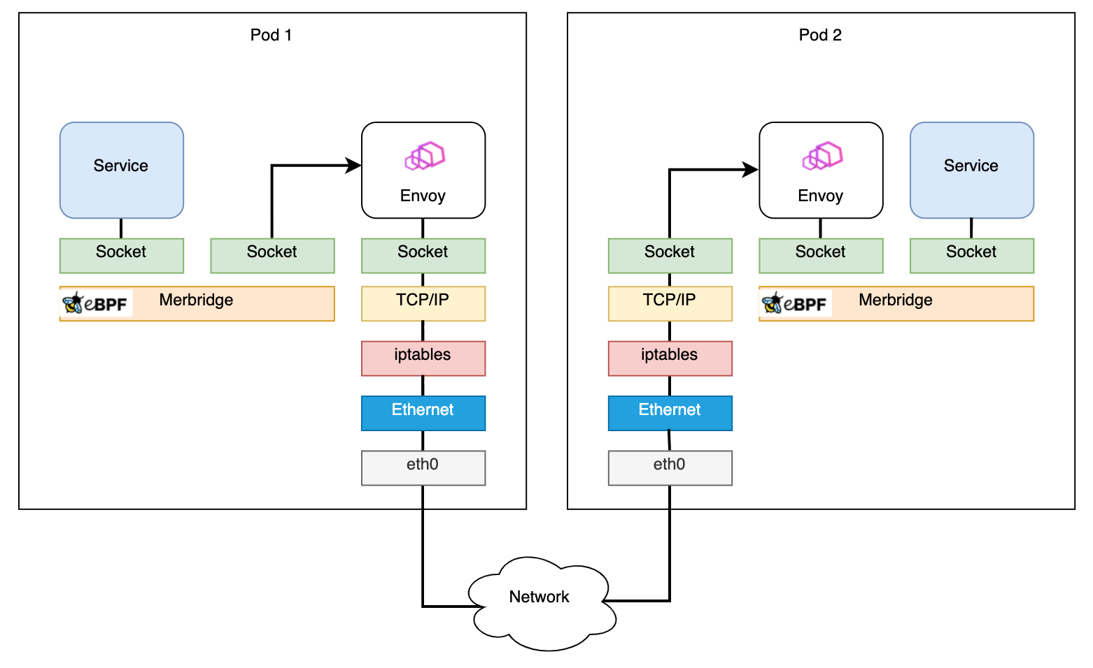 Above images are from the Merbridge docs, which are based on these slides from Thomas Graf's 2018 Kubecon talk "Accelerating Envoy with the Linux Kernel".
